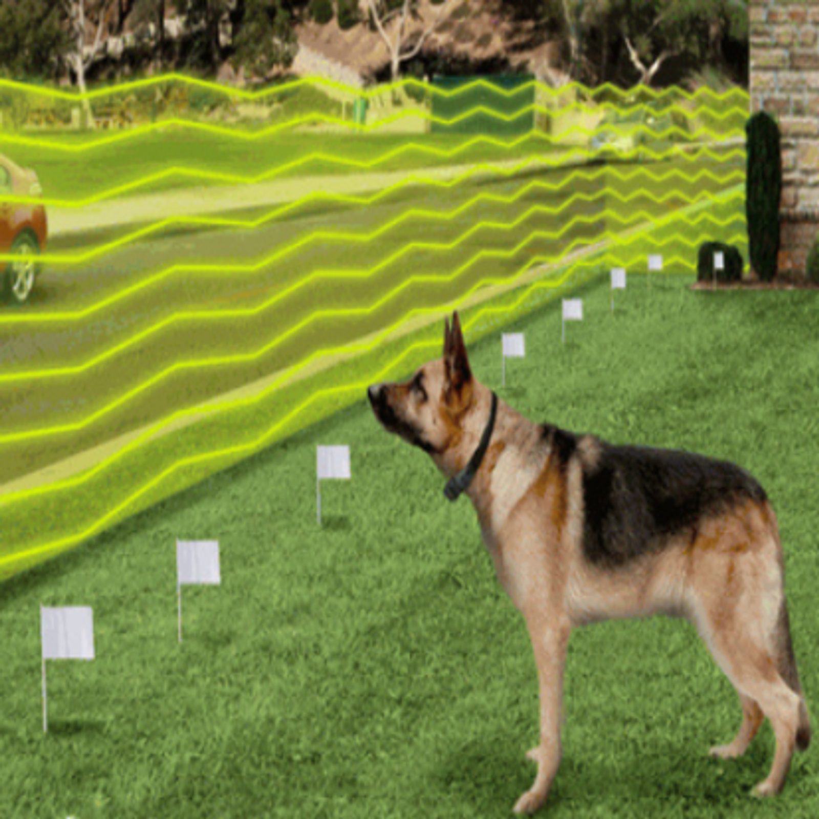 The boundary targets allow the dog to see the zone in which it can move freely and the boundaries it must not cross (if the wire is routed through a place where the boundary is not defined naturally, for example by a hedge). We recommend that the signs be placed on the inner edge of the sound warning zone, well apart. Once the dog is familiar with its boundary, the markers can be removed.