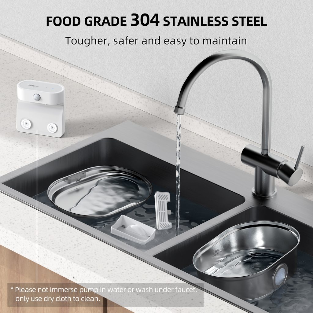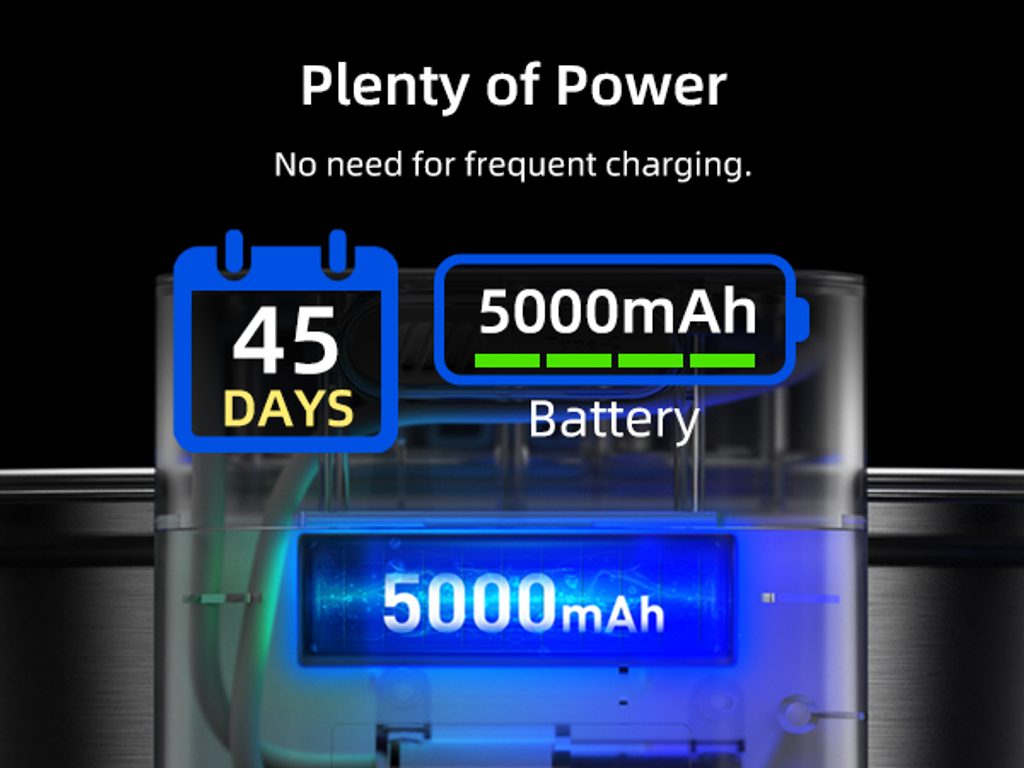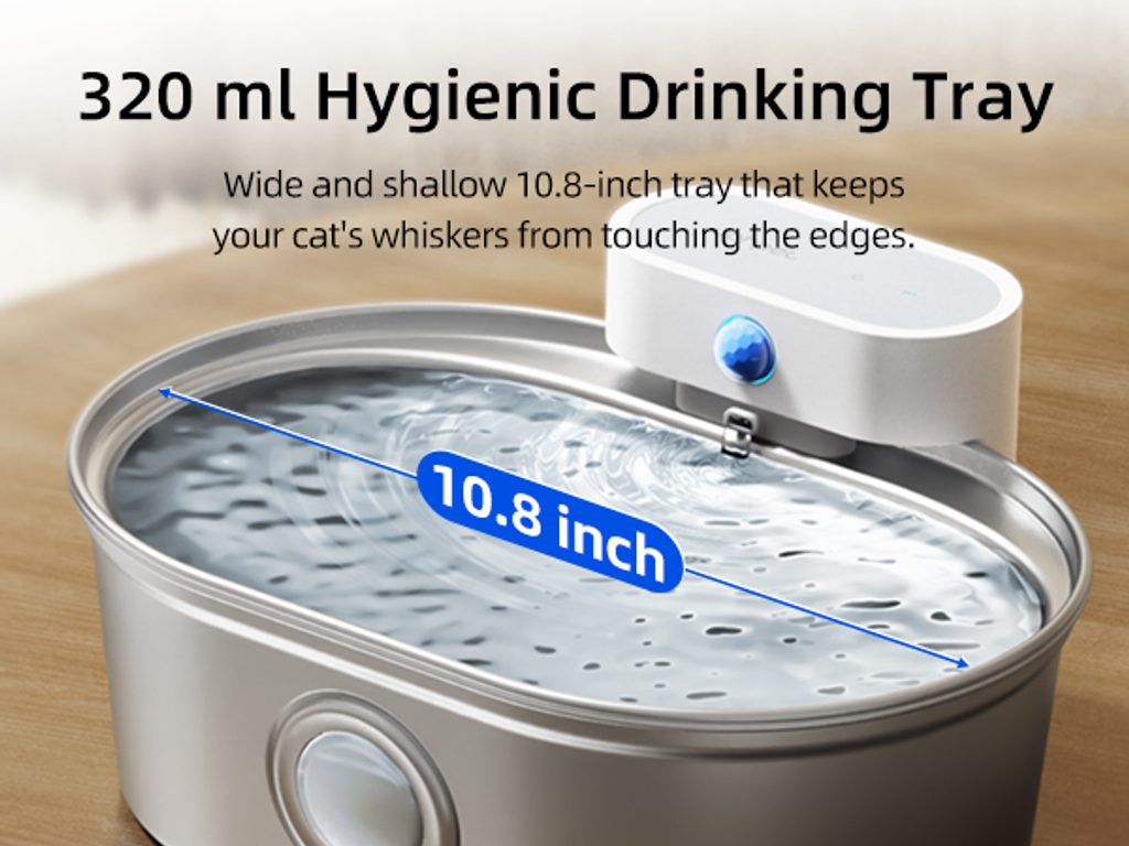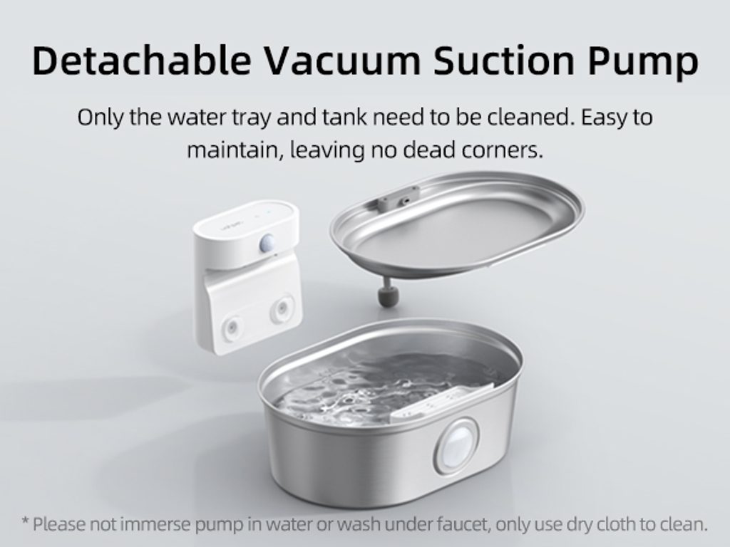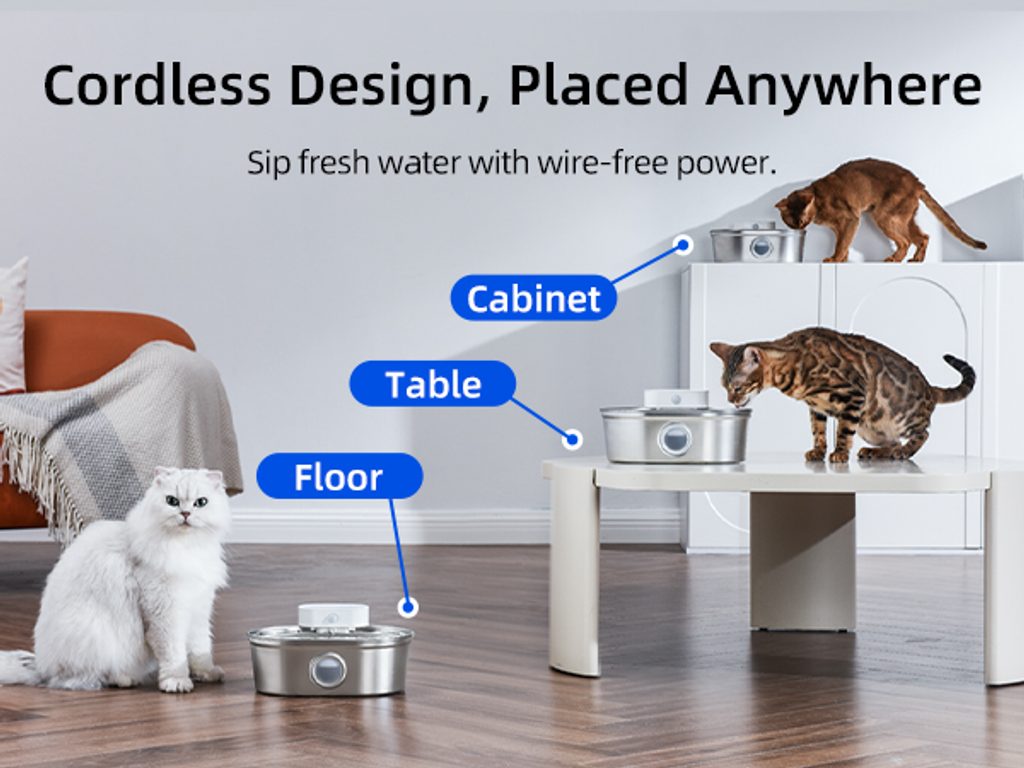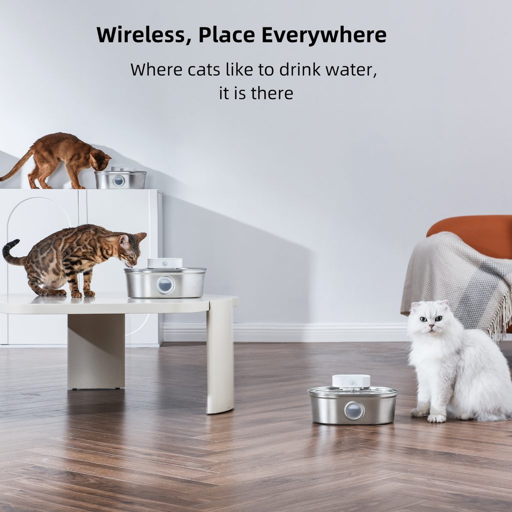 The UahPet Pro cordless stainless-steel fountain has a 2-litre capacity. This means it can last up to 15 days of continuous operation in a household with one or two cats. The large-capacity 5000mAh battery is sufficient for up to 45 days of operation. There is no need to charge the fountain frequently.