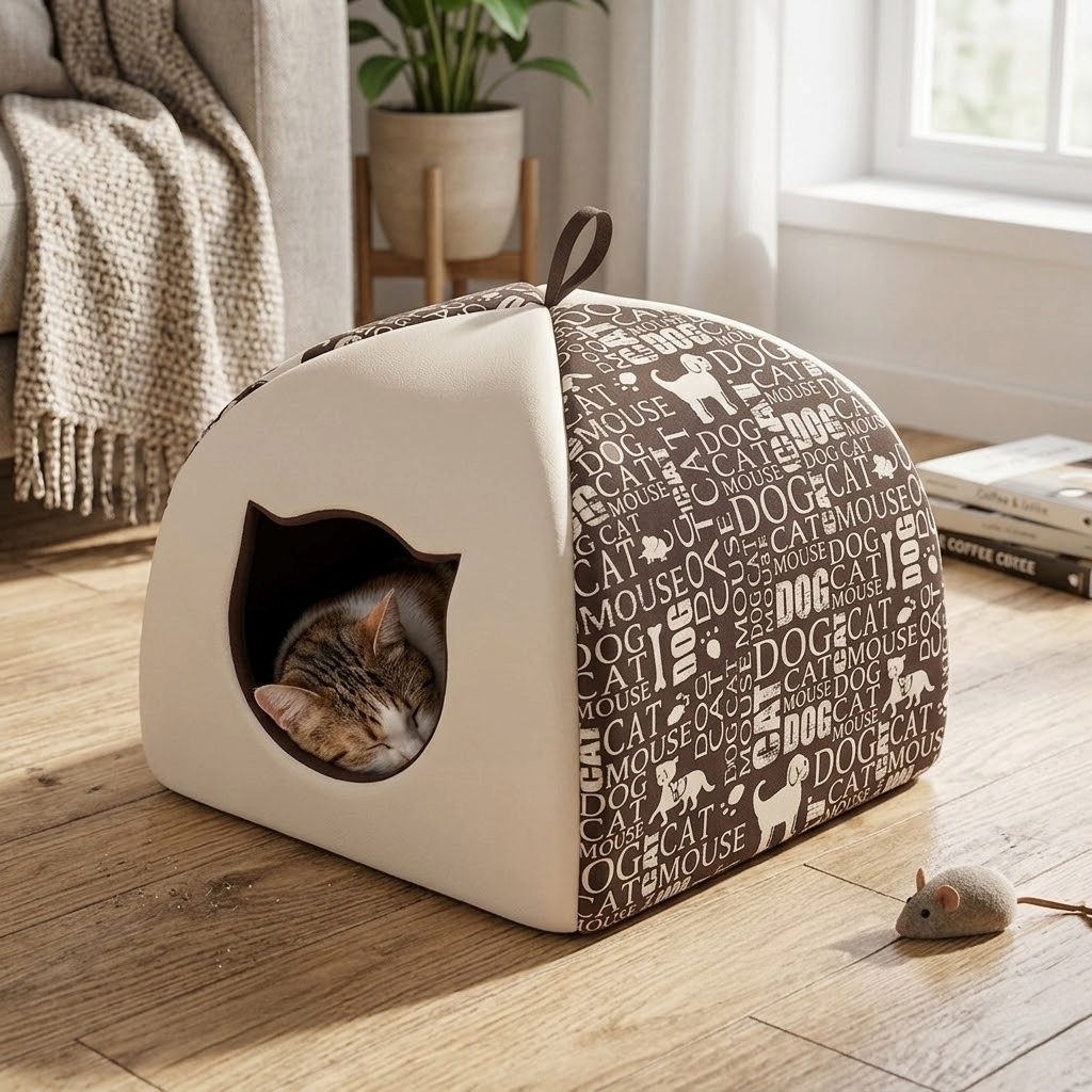 The inside of the nest is lined with pleasant and warm mattress for better sleep your cat