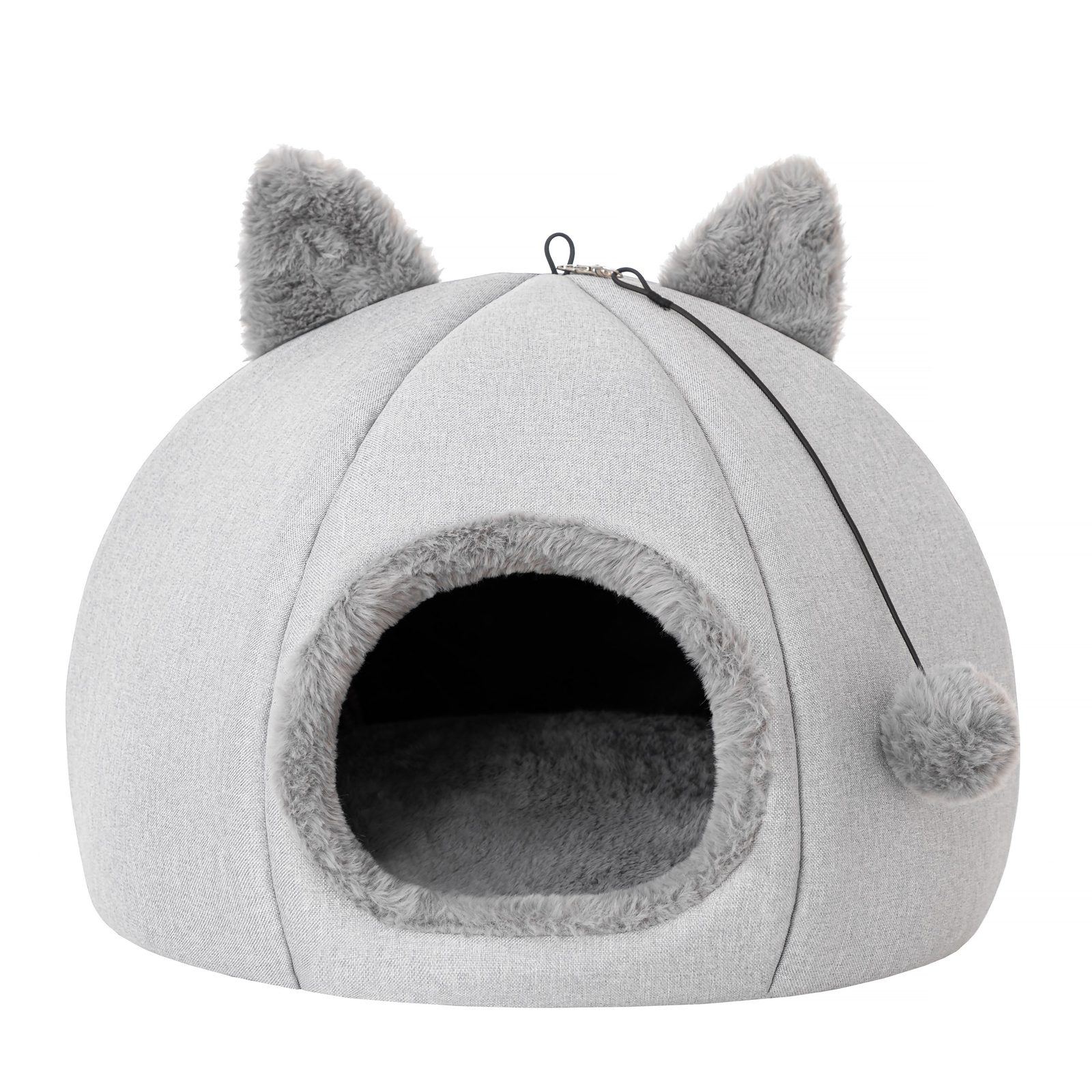 The stylish and practical Reedog Kitty Head Ash cat igloo in the shape of a cat's head is ideal for anyone who loves their four-legged friend. It offers comfort, fun, and easy maintenance, making it your cat's favorite sanctuary.