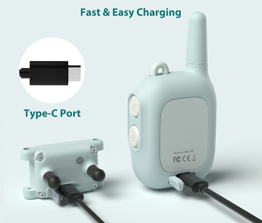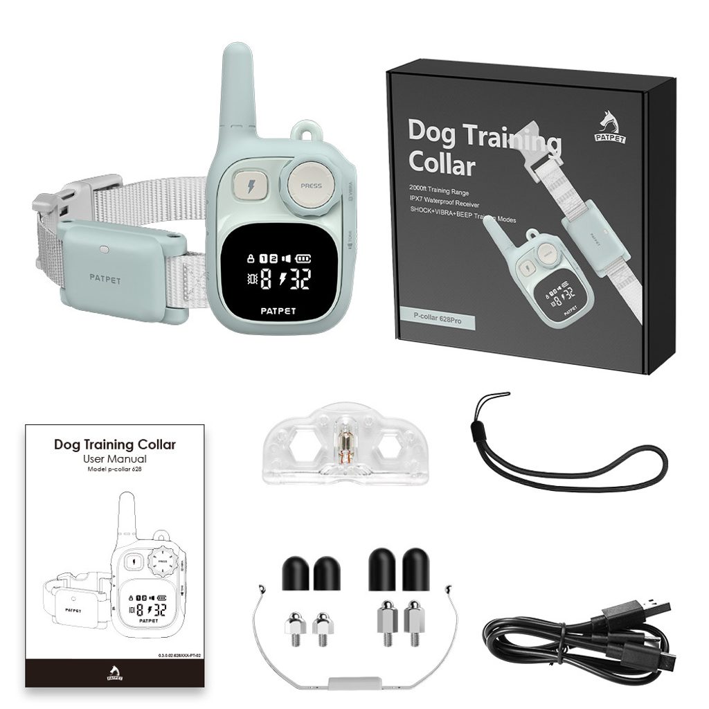 The Patpet 628 dog training collar is only waterproof with an IPX5 protection rating. It can only be used in light rain, however, prolonged stays in water and diving are not possible. This makes the collar an ideal choice for basic use but not for dog training in water. The transmitter has only the most basic water protection with an IPX1 rating.